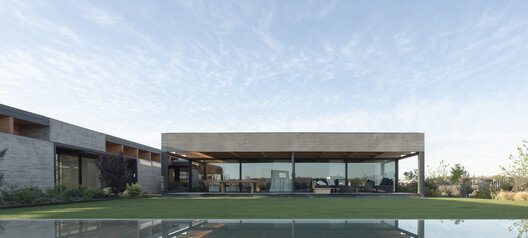 Projetada sob liderança do arquiteto Leonardo Codina, a moradia adota linguagem contemporânea e foi concebida para se integrar visualmente à paisagem local, caracterizada por vegetação nativa e ampla incidência de luz solar.
