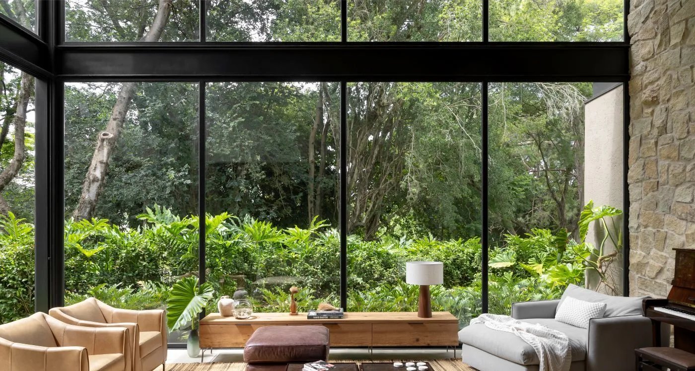 Uma residência de 369 m², erguida às margens de um lago em um condomínio de Paulínia, interior de São Paulo, foi projetada para servir de refúgio a um casal que buscava desacelerar a rotina. Distribuída em dois pavimentos, a construção combina estrutura metálica, materiais naturais e amplas aberturas para privilegiar iluminação, ventilação cruzada e contato direto com a mata.