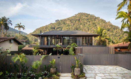 Classificada como arquitetura residencial, a Casa JV reforça a tendência de conciliar soluções construtivas atuais com o uso de elementos naturais, preservando a paisagem costeira de Ubatuba.