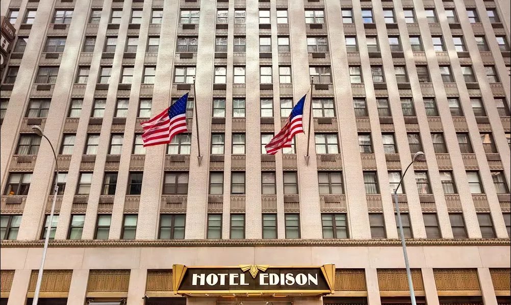 O Edison Hotel, inaugurado em 1931 no coração da Broadway, em Nova York, segue preservando a estética art déco que marcou a cidade nas décadas de 1920 e 1930. Projetado pelo arquiteto Herbert J. Krapp (1886-1973), o edifício recebeu destaque já na abertura oficial, quando o inventor Thomas Alva Edison acionou as luzes do prédio pela primeira vez.