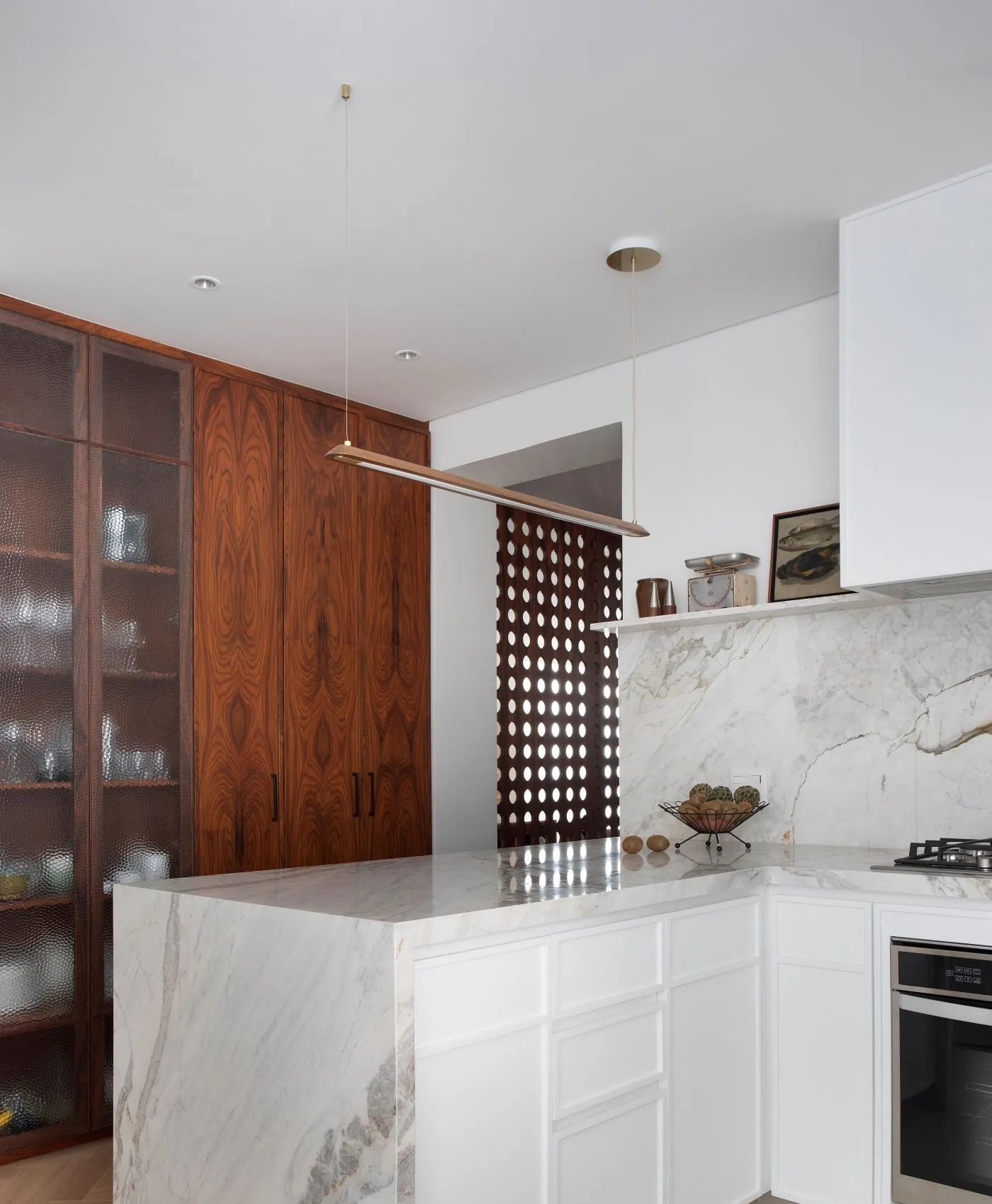Dentro da jazida paranaense surgem versões como Calacata Nuvolato (mais claro, com veios dourados), Calacata Grigio (tonalidade mais escura) e um tipo rosado, destaca a arquiteta Cristiane Schiavoni.