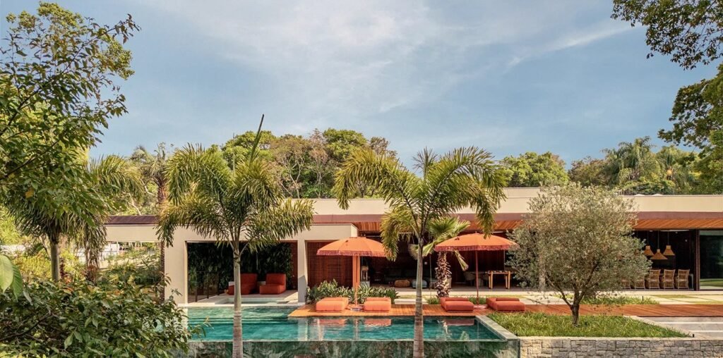 Com dois filhos jovens e rotina marcada por encontros entre amigos, a proprietária buscava ambientes ao ar livre que dialogassem com a arquitetura concebida pela arquiteta Paula Gonçalves Reis. Paisagismo e obra civil foram desenvolvidos simultaneamente para garantir continuidade entre interior e exterior.