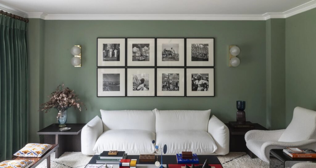 Móveis do designer italiano Mario Marenco, tapetes coloridos e fotografias em preto e branco fazem parte do acervo dos moradores e foram distribuídos pelos ambientes para criar camadas de textura e memória. A banheira do banheiro principal combina diferentes revestimentos, reforçando o conceito de “conforto silencioso” citado por Carolina Maluhy.