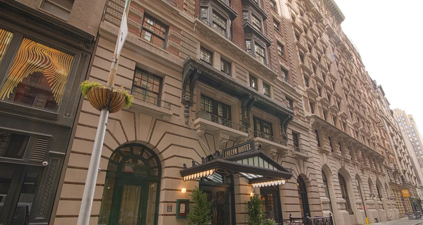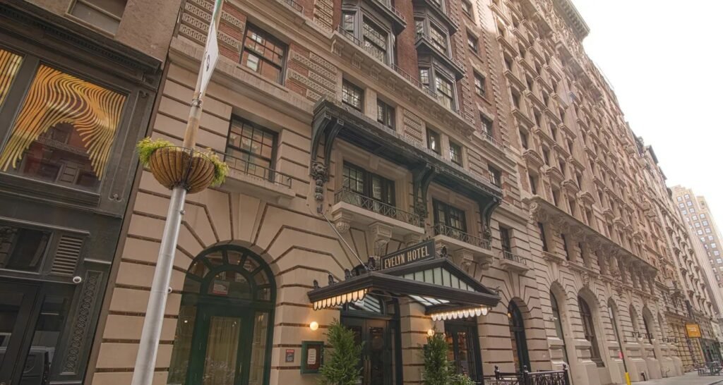 NOVA YORK (EUA) – Em Midtown Manhattan, o hotel The Evelyn reúne referências art déco e art nouveau para reviver a atmosfera glamourosa das décadas de 1920 e 1930. O edifício, projetado em 1903 pelo arquiteto William H. Birkmire, foi inaugurado em 1905 como Hotel Broztell e se tornou ponto de encontro do distrito musical Tin Pan Alley.